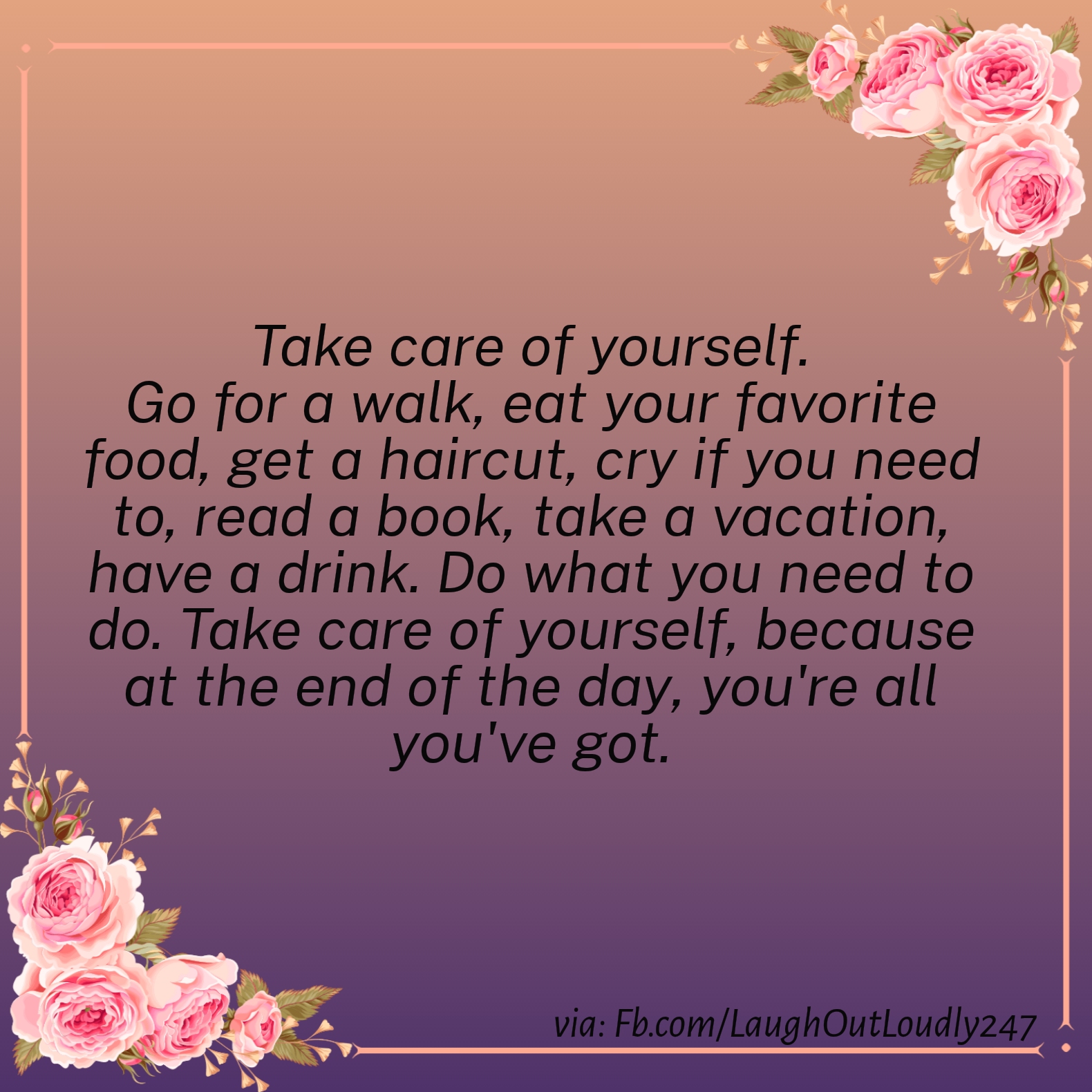 We need to accept that some people won’t like you, this happens, but there are many that will, don’t let this make a difference in your life carry on and have fun, fun has to be a priority in your life, always, this affects your mood your look your very presence. Always be grateful for everything that forms part of your life, showing gratitude will allow more things to be grateful for, write down your successes, when we write our wishes and desires we give them wings and wonderful power, you need to connect with your feelings, feel what you are all about, and what you are worth…. take care of yourself and your body and this includes your mind, the more self love you feel the more love you can give, you know what you want in your life, you need to stand up for yourself and allow people to love you how you wish to be loved, remember that when you speak to yourself, to speak kindly, don’t hurt yourself with the words you use, and never allow others to speak to you in a bad way, if you don’t like it let it be known, you are to be respected at all times, we can all hold different opinions but we should never lose respect for others or ourselves, always surround yourself with people that are worthy of you, even when you have to let people go, it will be because they do not treat you with kindness and respect, you need the people you wish to surround you, not the one’s that wish to enforce themselves on you, you need to feel comfortable and not under pressure to be someone you are not, feel good in your own skin and free enough to be who you are!